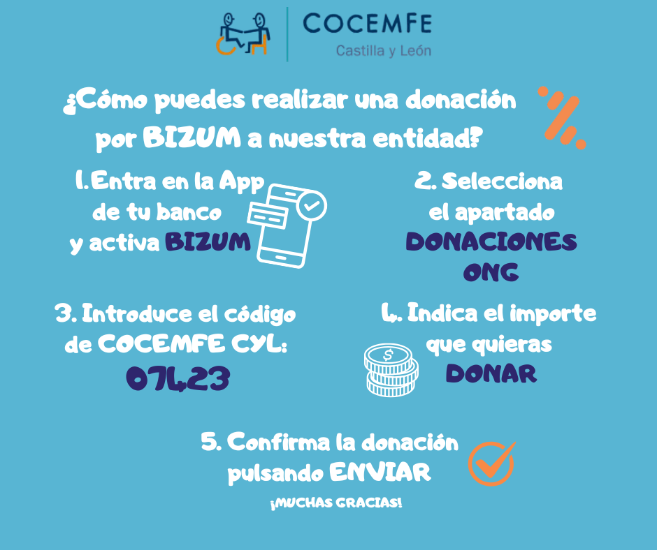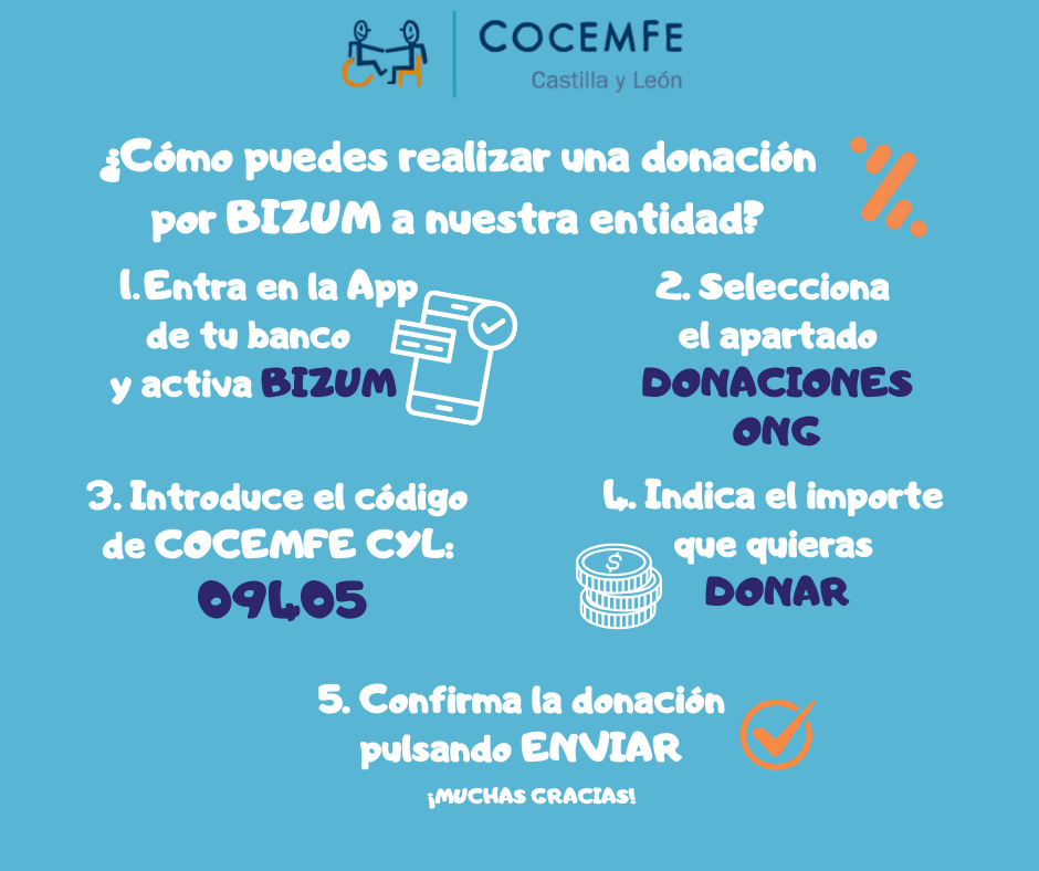Mediante donaciones de particulares COCEMFE CASTILLA y LEÓN puede poner en marcha nuevos proyectos destinados a mejorar la calidad de vida de las personas con discapacidad y sus familias. Actualmente, tenemos un proyecto solidario dirigido a las personas mayores en situación de grave dependencia y/o grave discapacidad del medio rural de Castilla y León que nos gustaría poder poner en marcha.